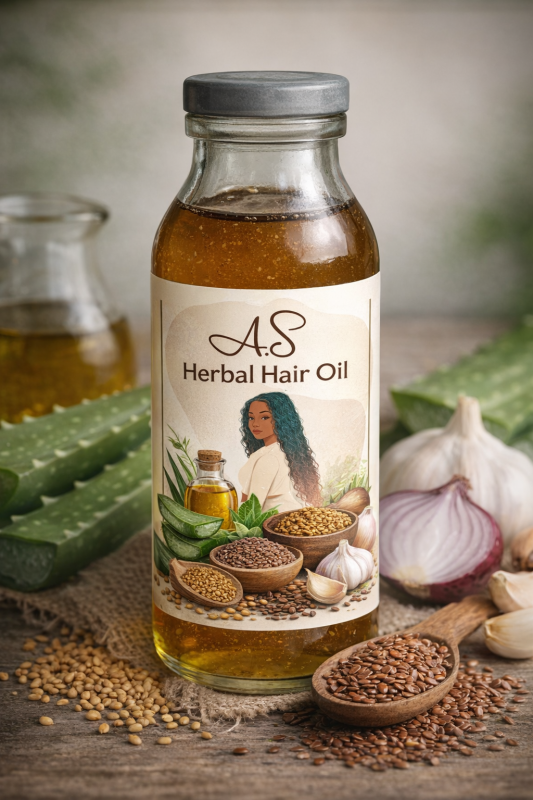 AS Herbal Hair Oil is a premium natural hair care solution made using carefully selected herbal ingredients known for their powerful hair-strengthening properties. This unique formula penetrates deeply into the scalp to nourish hair follicles and support healthy hair growth.